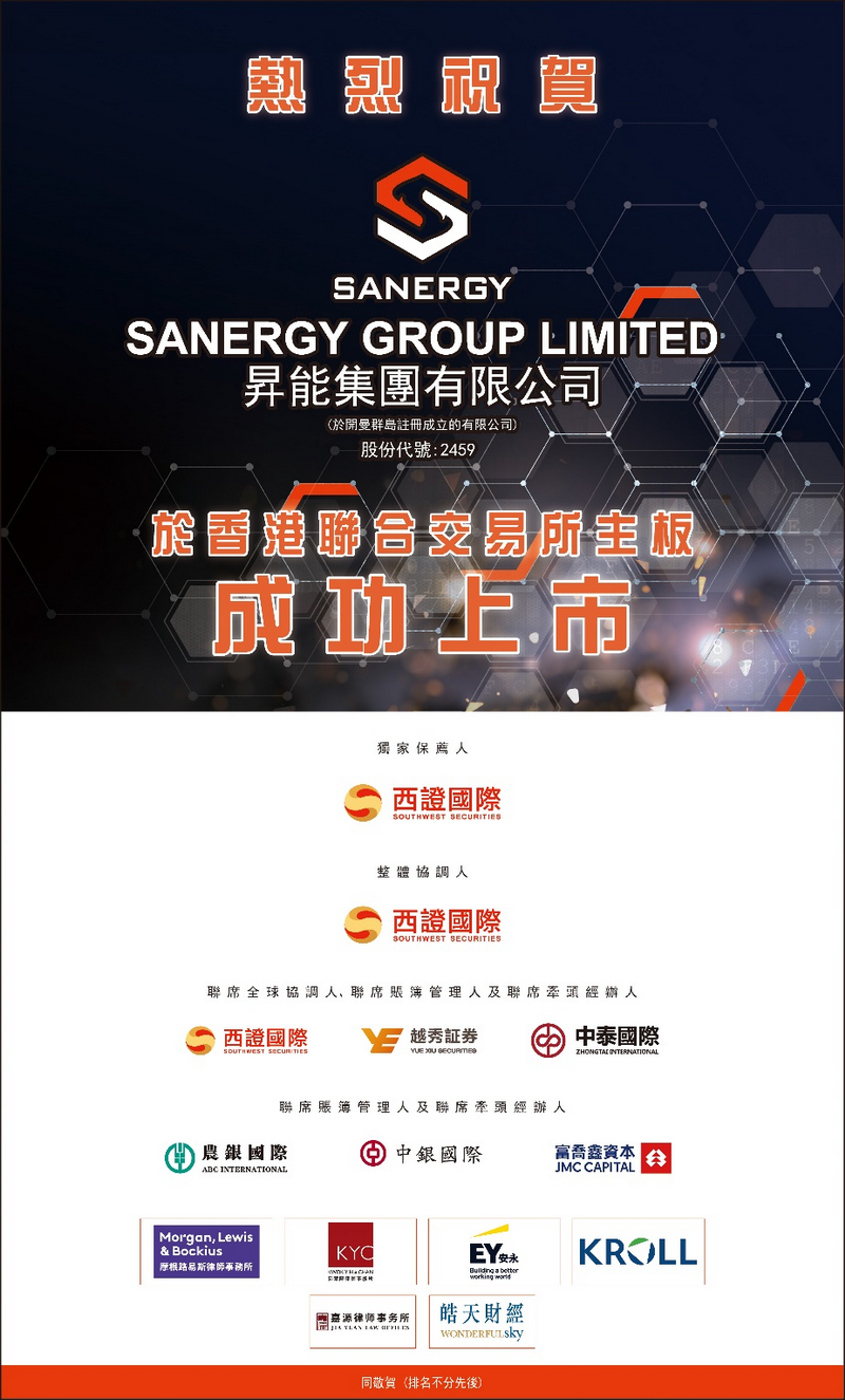 超高功率石墨电极的全球制造商——升能集团有限公司(股份简称“升能集团”或“公司”;股份代号:2459.HK)于今日在香港联合交易所有限公司主板正式挂牌上市。此次上市由皓天财经协助完成公关宣传工作,为升能集团树立了卓越的企业形象,上市项目亦得以圆满完成。