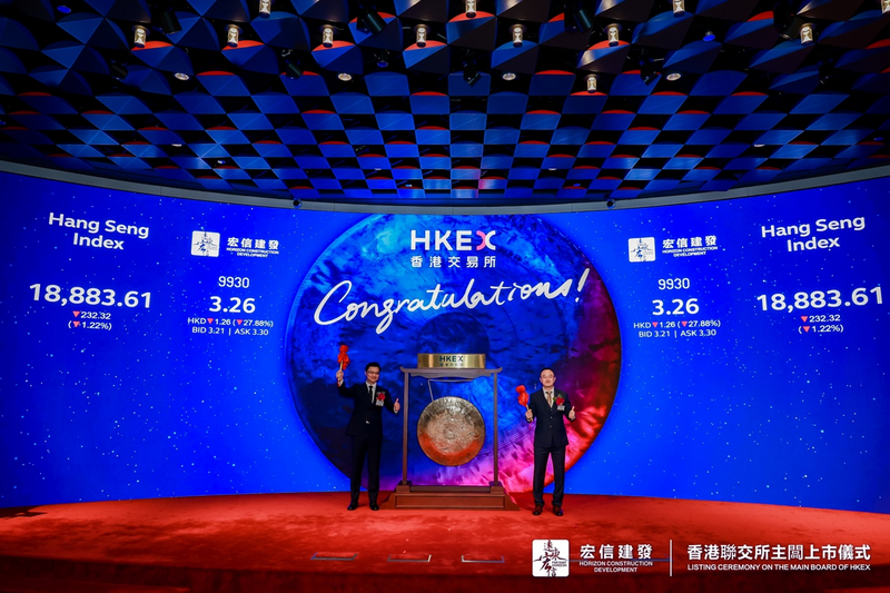 2023年5月25日,宏信建设发展有限公司(以下简称“宏信建发”或“公司”,股份代号:09930.HK)在香港联合交易所有限公司主板正式挂牌上市。此次上市由皓天财经协助完成公关宣传工作,为该公司树立了行业领先的企业形象,上市项目亦取得圆满成功。