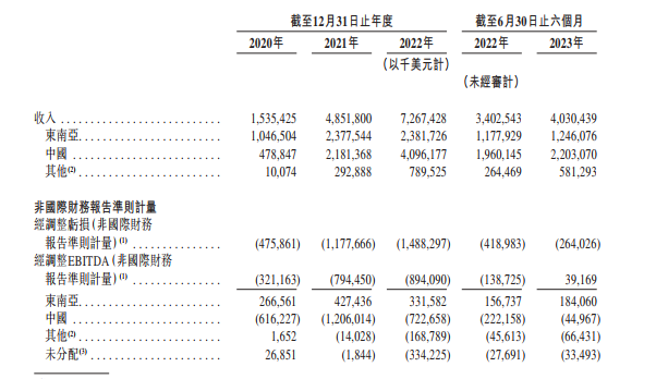 伴随着业务的扩张,极兔快递的业绩也实现了显著增长。2020-2022年间,公司收入从15.35亿美元增至72.67亿美元,复合年增长率达到117.56%。2023年上半年,公司取得收入40.30亿美元,同比增长18.45%。盈利方面,2023年上半年,公司经调整EBITDA为盈利3916.9万美元,而去年同期亏损达1.39亿美元,同比实现大幅扭亏为盈。